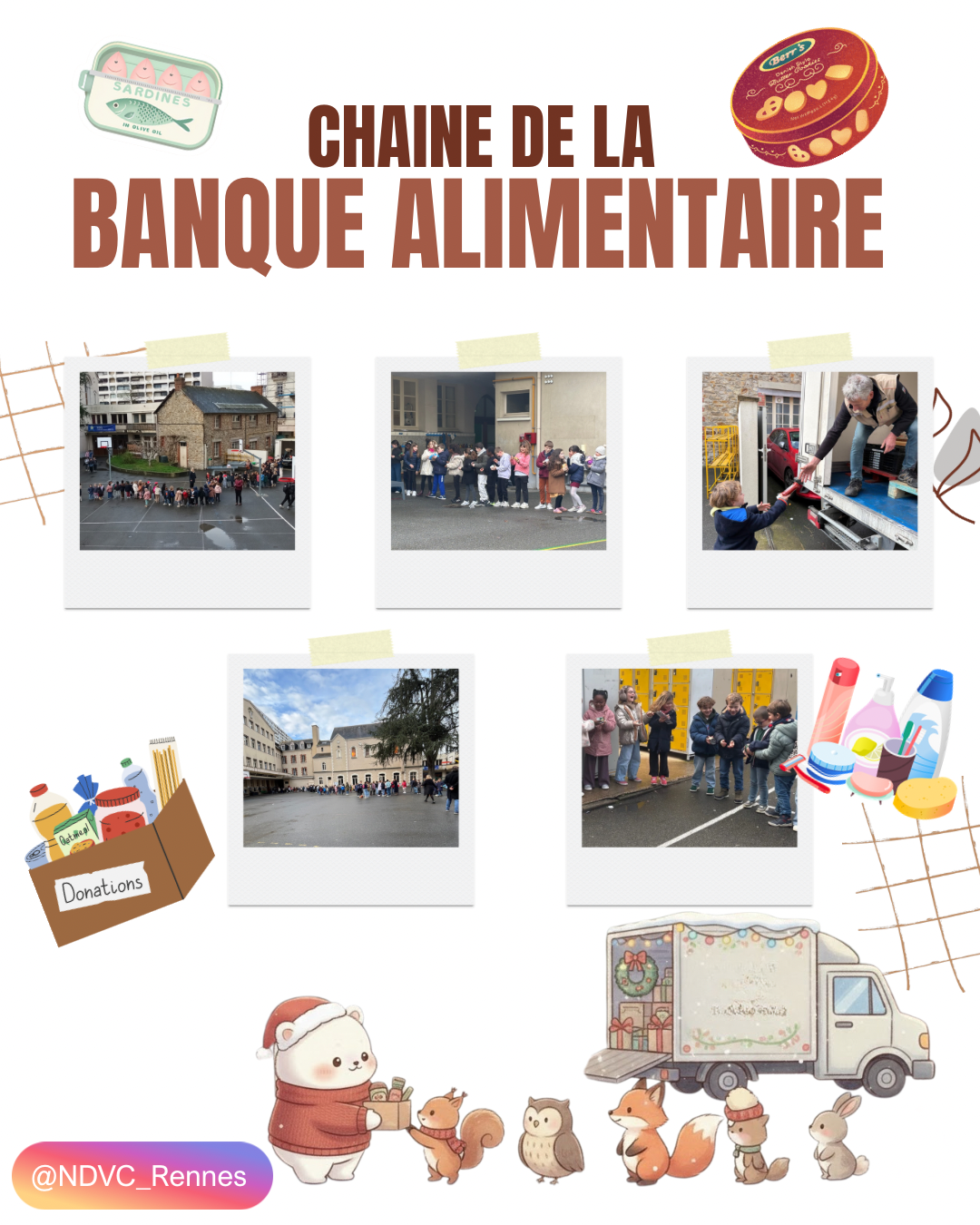 Tous ont participé à une chaîne humaine géante afin d’acheminer l’ensemble des dons jusqu’au camion de la Banque Alimentaire 🚚✨